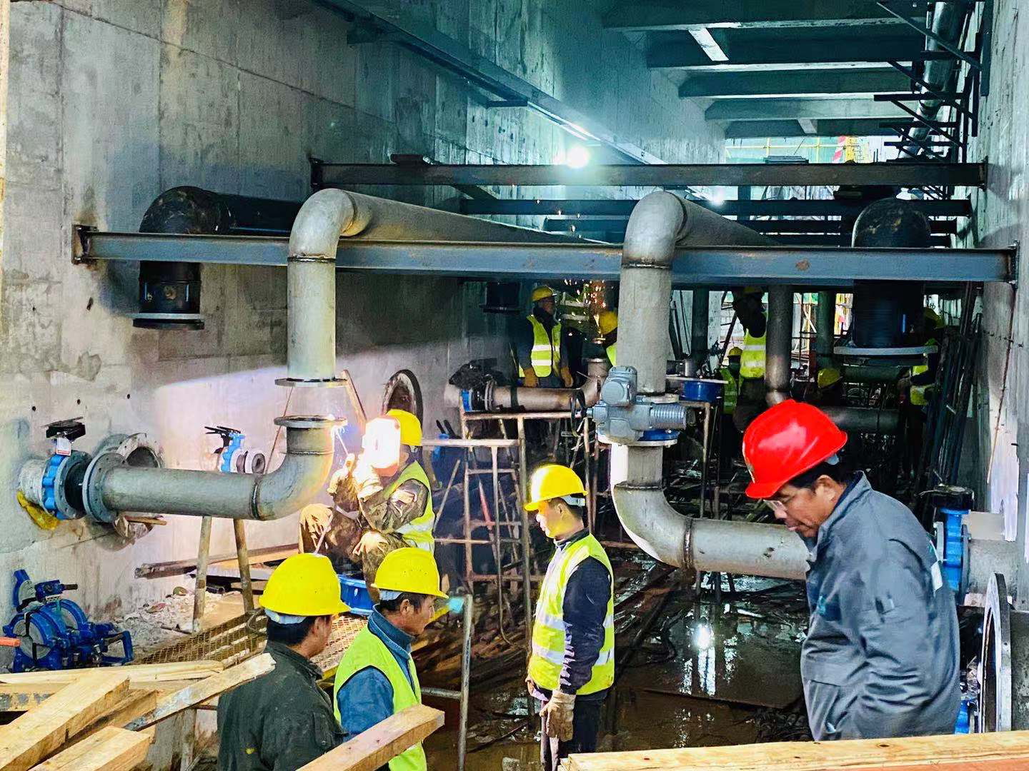 為保證工作順利推進(jìn),在現(xiàn)場(chǎng)施工條件復(fù)雜、工期緊張、施工難度大的情況下,集團(tuán)領(lǐng)導(dǎo)多次親臨現(xiàn)場(chǎng)指導(dǎo)工作,統(tǒng)籌規(guī)劃,協(xié)調(diào)各方,帶領(lǐng)項(xiàng)目部同事因地制宜,因時(shí)制宜,有序安排設(shè)備材料進(jìn)場(chǎng)。在與土建工作存在交叉作業(yè)時(shí),全體項(xiàng)目部同事不畏艱苦,積極創(chuàng)造工作面,團(tuán)結(jié)協(xié)作,奮勇直前,順利實(shí)現(xiàn)業(yè)主的節(jié)點(diǎn)計(jì)劃。