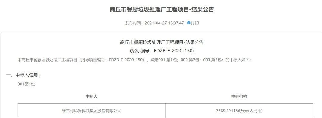 近期,維爾利環保科技集團股份有限公司參與了商丘市餐廚垃圾處理廠工程項目第一標段的投標,成為該項目第一標段中標人。