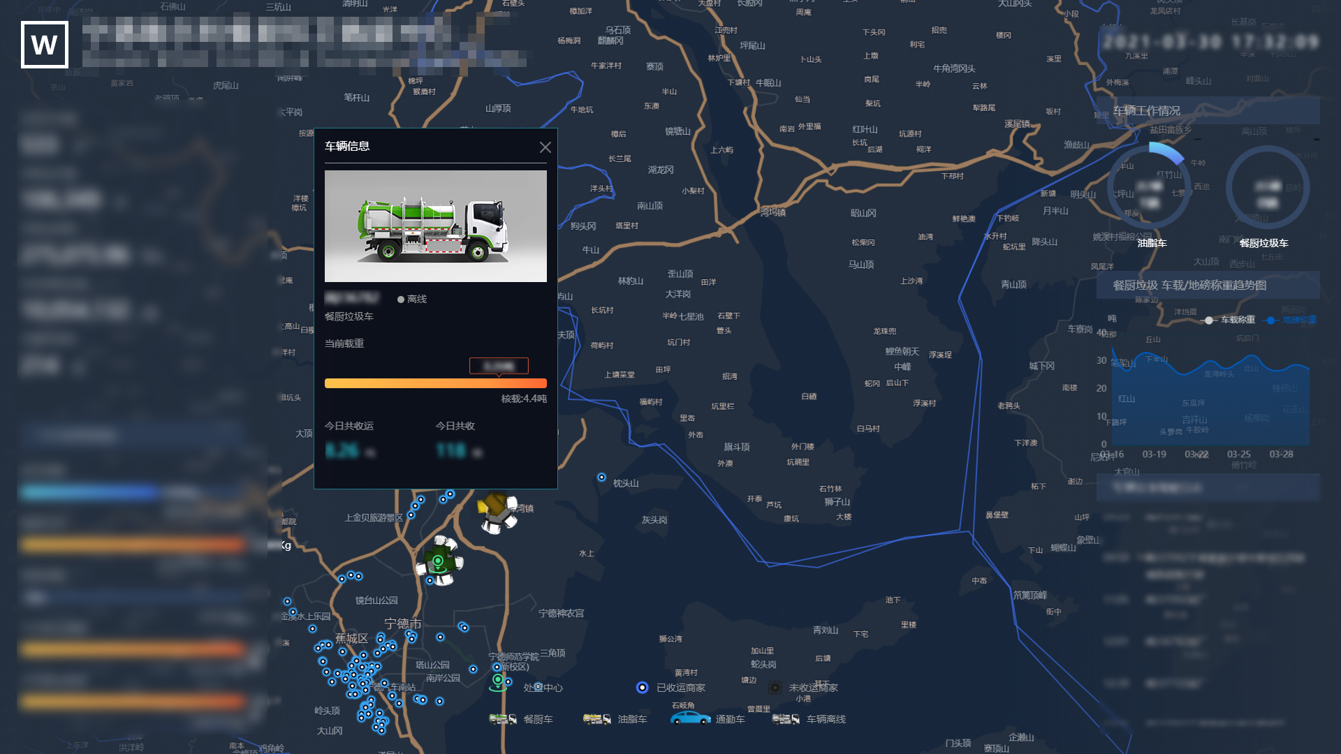 全方位無死角的收運(yùn)作業(yè)全過程監(jiān)管,通過一個(gè)數(shù)字化中心平臺(tái),整合商家、人員、車輛、設(shè)備及事件處置信息,實(shí)現(xiàn)商家與車輛互聯(lián)互通、違規(guī)作業(yè)智能研判、事件中心任務(wù)調(diào)度、車輛全生命周期管養(yǎng)維護(hù)等,保障收運(yùn)作業(yè)的安全、智能、高效與規(guī)范性。