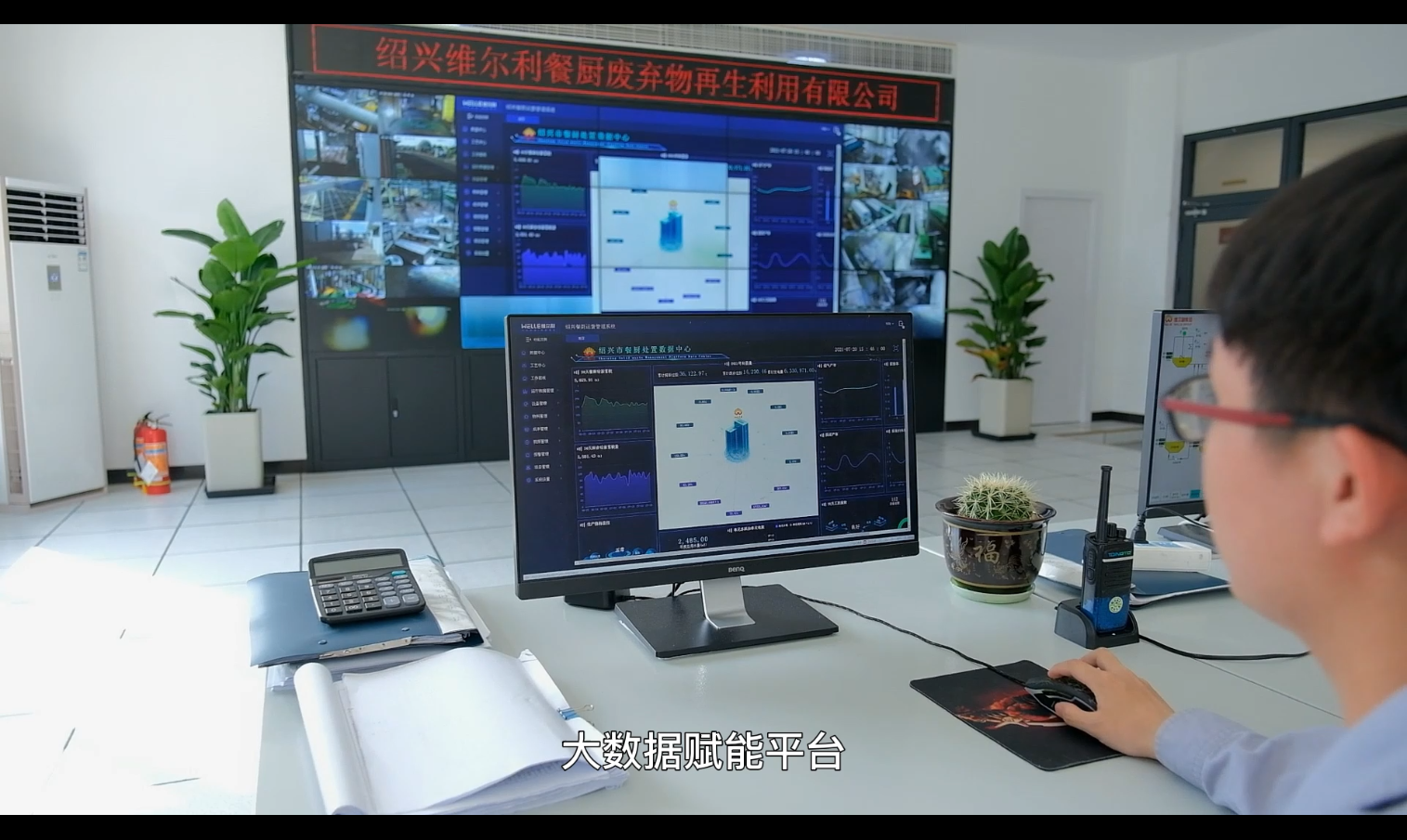 項(xiàng)目使用由維爾利集團(tuán)建設(shè)的全自動(dòng)化、智能化、數(shù)字化的運(yùn)營管理系統(tǒng),通過中控指揮中心的餐廚垃圾全生命周期大數(shù)據(jù)賦能平臺(tái),可對(duì)餐廚垃圾處理全過程涉及的人員、收運(yùn)車輛、設(shè)備、生產(chǎn)系統(tǒng)和各類事件進(jìn)行集中管控,并在指揮中心的大屏實(shí)時(shí)顯示收運(yùn)車輛和處置廠區(qū)的情況。
