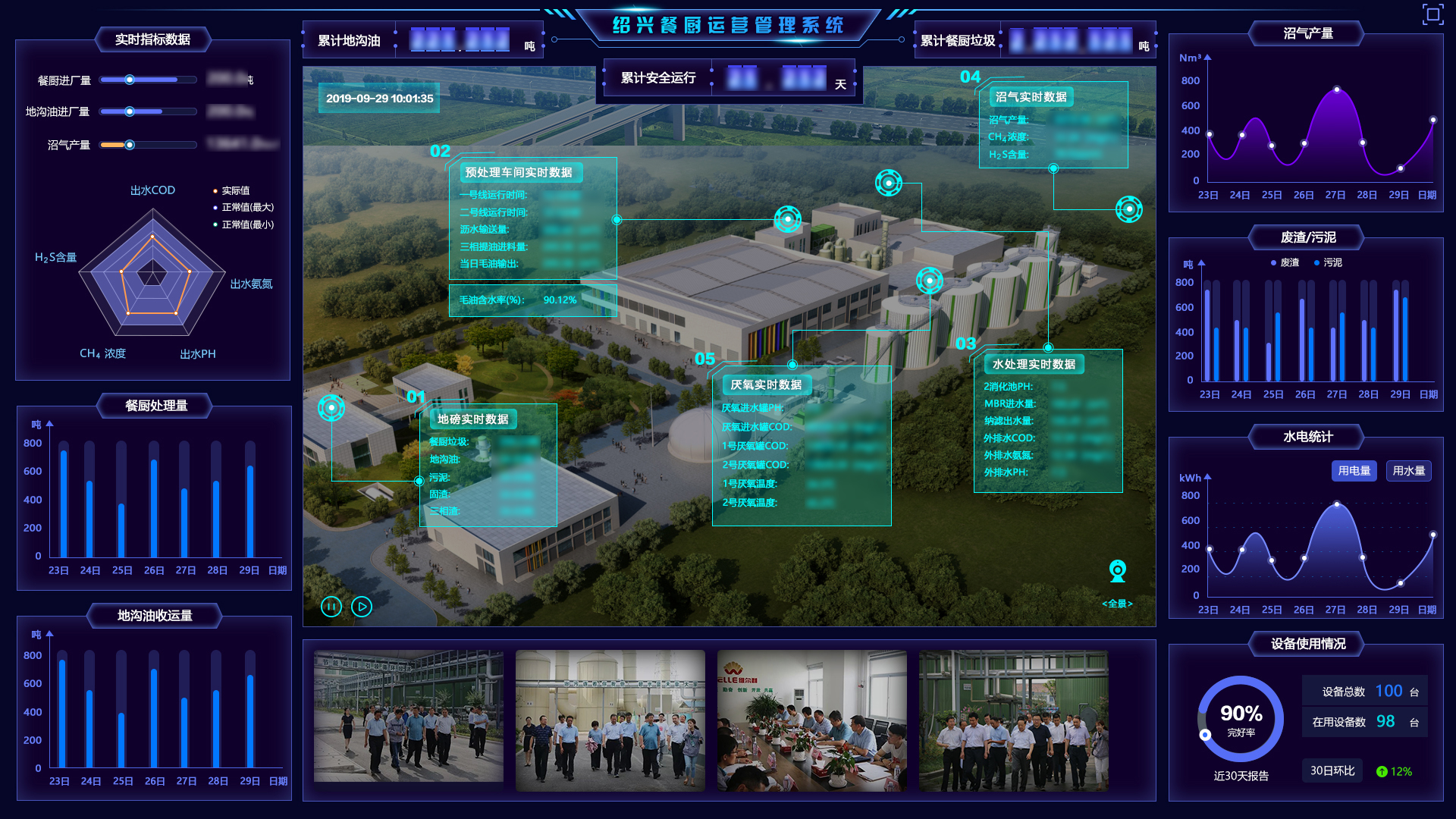 建設(shè)數(shù)字化的餐廚終端處置廠,通過智慧化生產(chǎn)運(yùn)營管控體系,整合2D/3D動(dòng)態(tài)擬真工藝中心、遠(yuǎn)程工控、數(shù)據(jù)監(jiān)測、視頻監(jiān)管、智能預(yù)警、移動(dòng)巡檢、設(shè)備管理、能耗物耗管理等功能,實(shí)現(xiàn)處置廠全局態(tài)勢感知、智能聯(lián)動(dòng)、智慧決策提高處置和資源化產(chǎn)出效率,減少生產(chǎn)事故,實(shí)現(xiàn)降本增效。